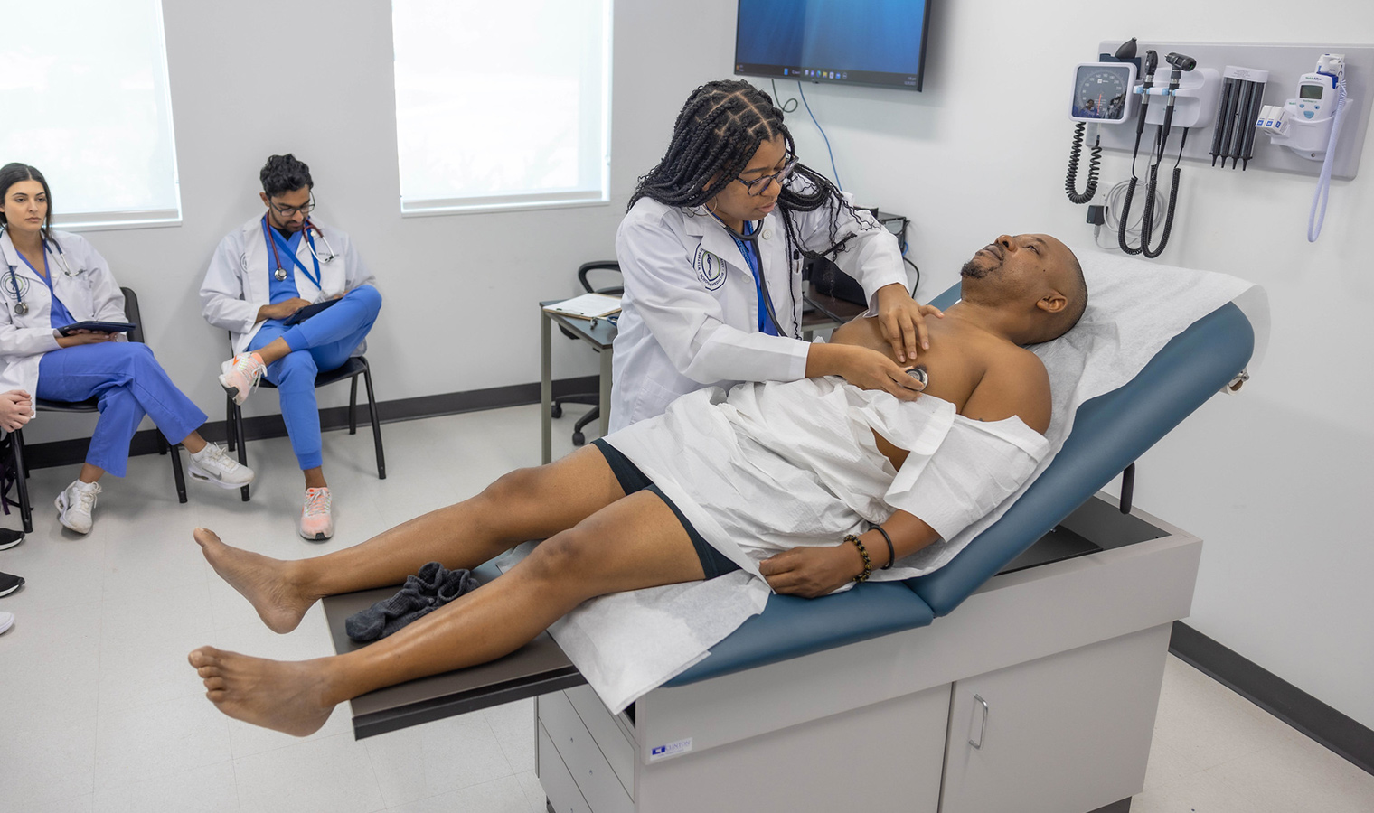 At WAUSM, our clinical exam rooms give students the opportunity to interact with standardized patients to learn physical exam techniques, as well as integral communication skills that promote diversity and inclusion. Each exam room is designed like a typical physician’s office, allowing WAUSM students to become skilled in patient-physician interactions, while being mentored by faculty in real time.